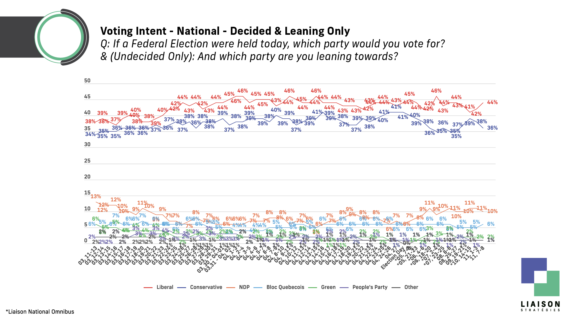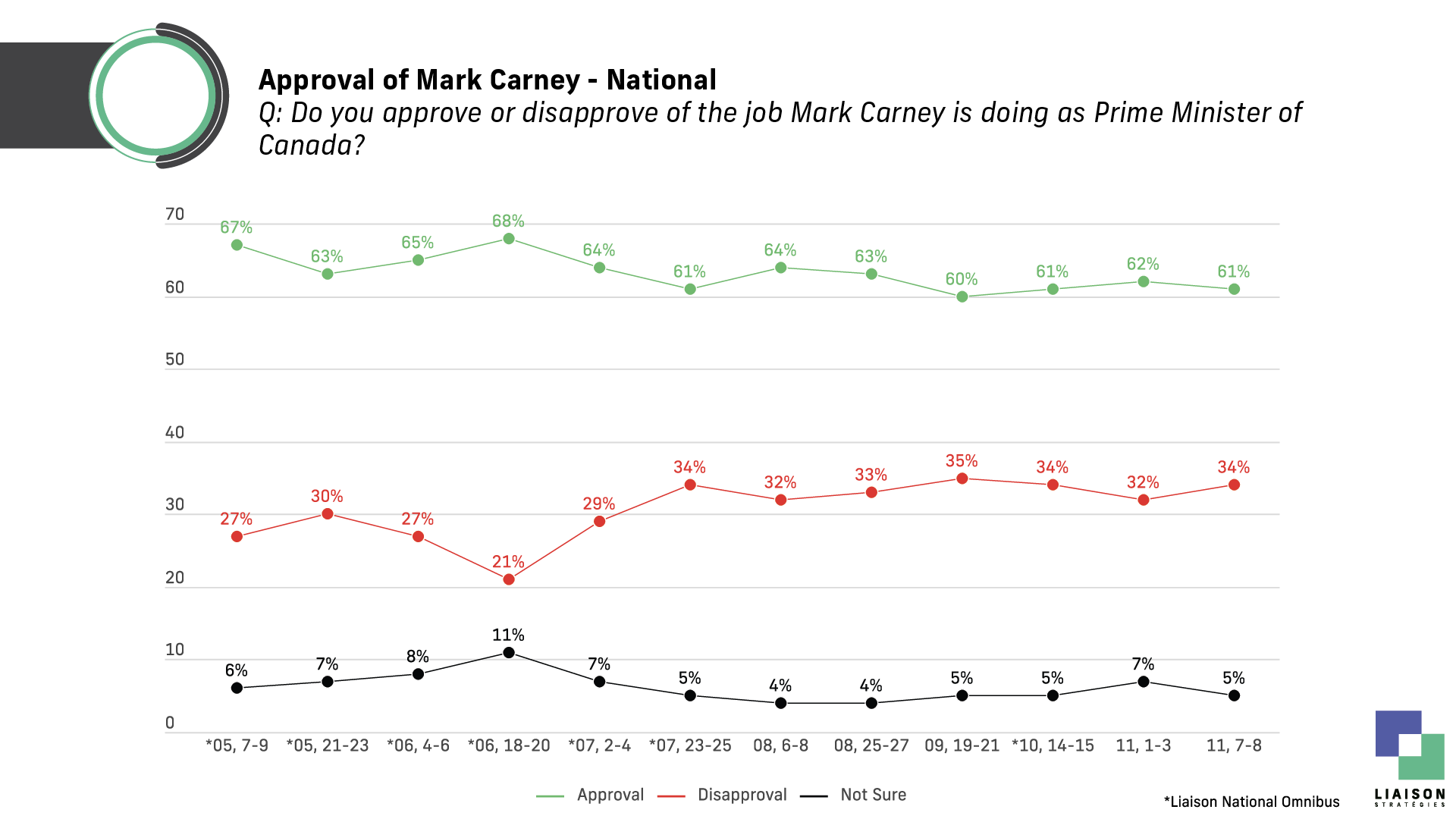 Liaison Strategies is one of the most accurate polling firms in Canada. It ranked #1 in accuracy in the 2025 Ontario election and #2 nationally in the 2025 federal election. Liaison is a member of the Canadian Research Insights Council (CRIC).