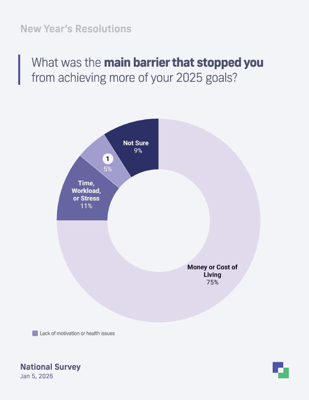- Looking ahead, the cost of living remains the biggest obstacle to 2026 goals: 68% say financial pressure will be the hardest barrier to overcome.