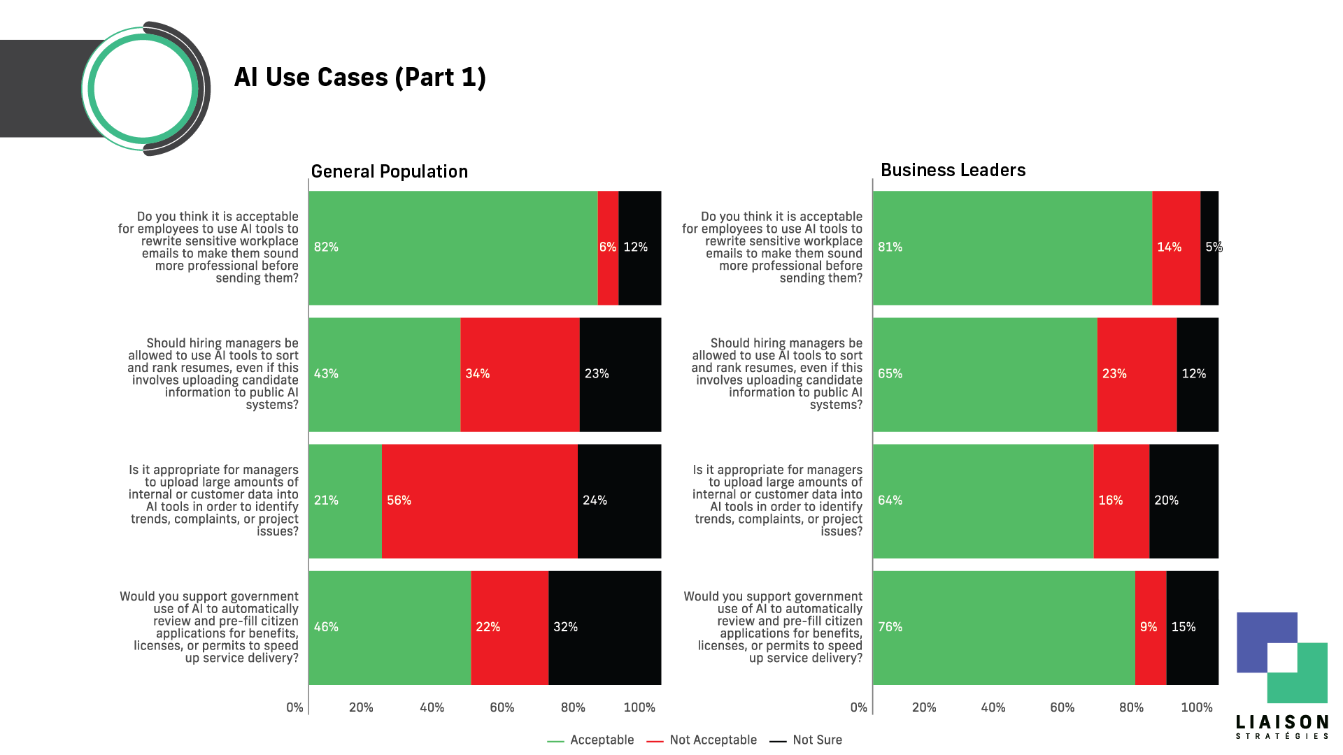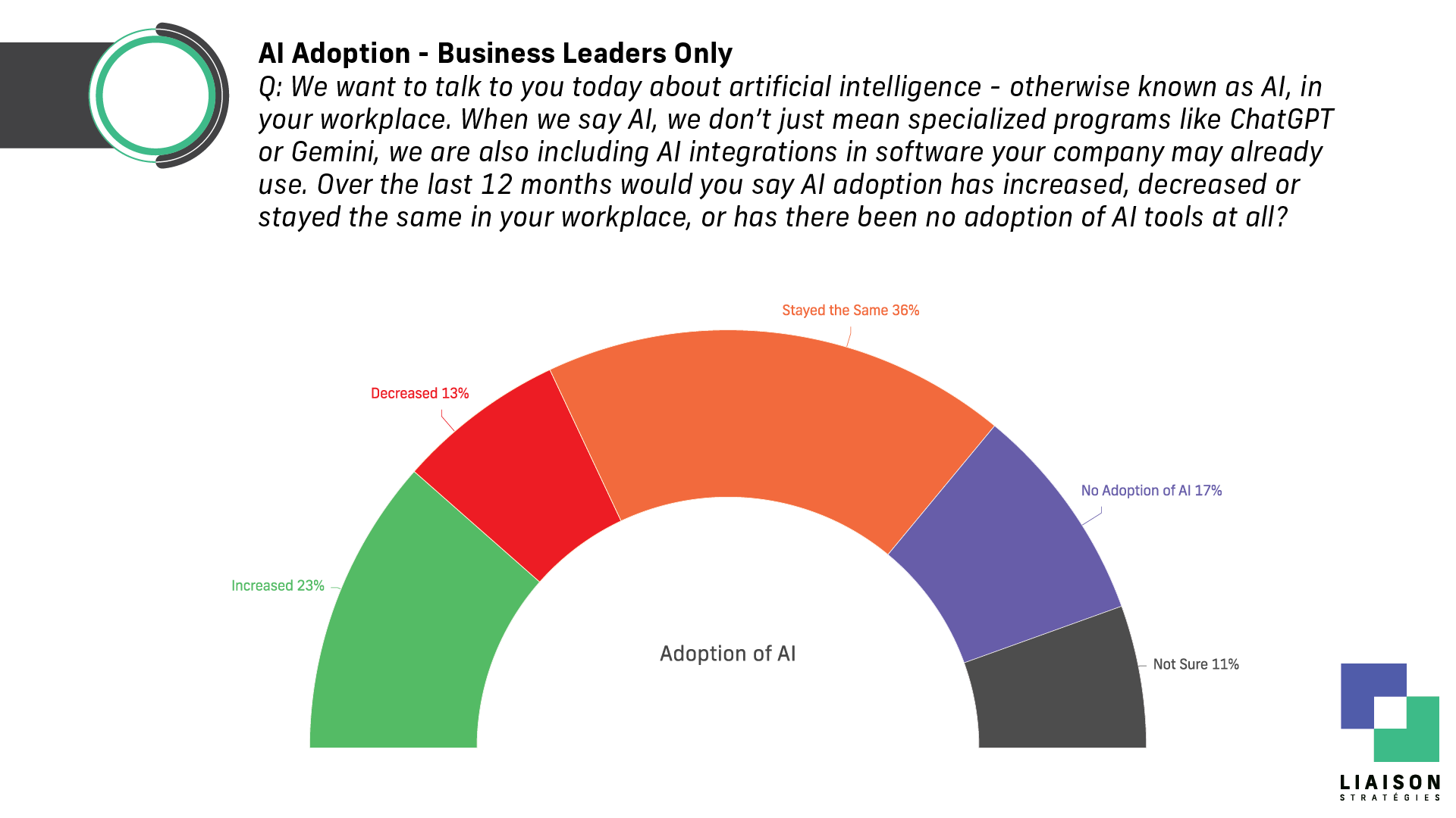 “This survey lays bare the adoption paradox: businesses are cautiously experimenting with AI, but the public is unconvinced, and there is little trust in the use of AI by major institutions. The opportunity is real, but without rebuilding confidence, pushing AI harder risks backlash," said David Valentin, Principal at Liaison Strategies.