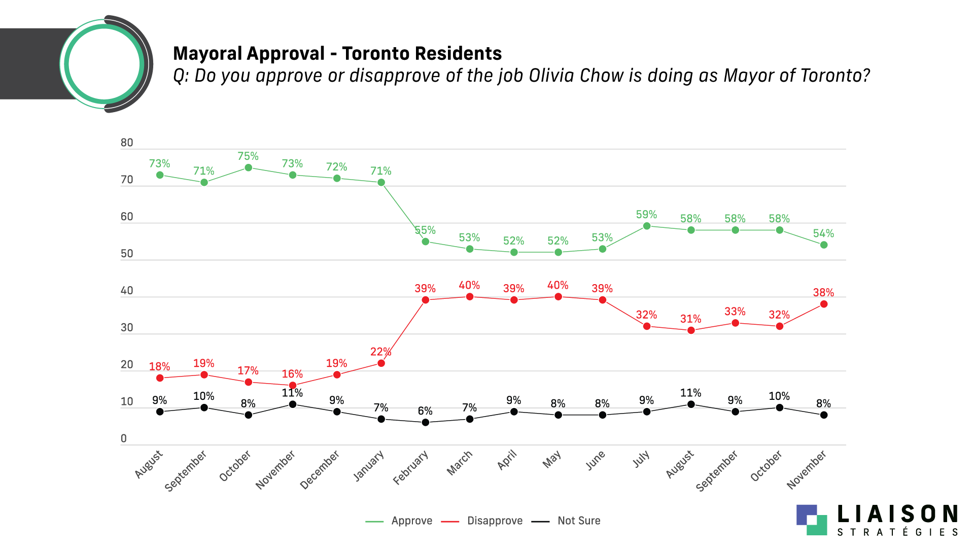 November 13, 2024 (Toronto, ON) – A new Liaison Strategies poll for the National Ethnic Press and Media Council of Canada (NEPMCC) finds Olivia Chow's approval ratings taking a dip while most Torontonians support a 2018 anti-scalping law that was never enacted.