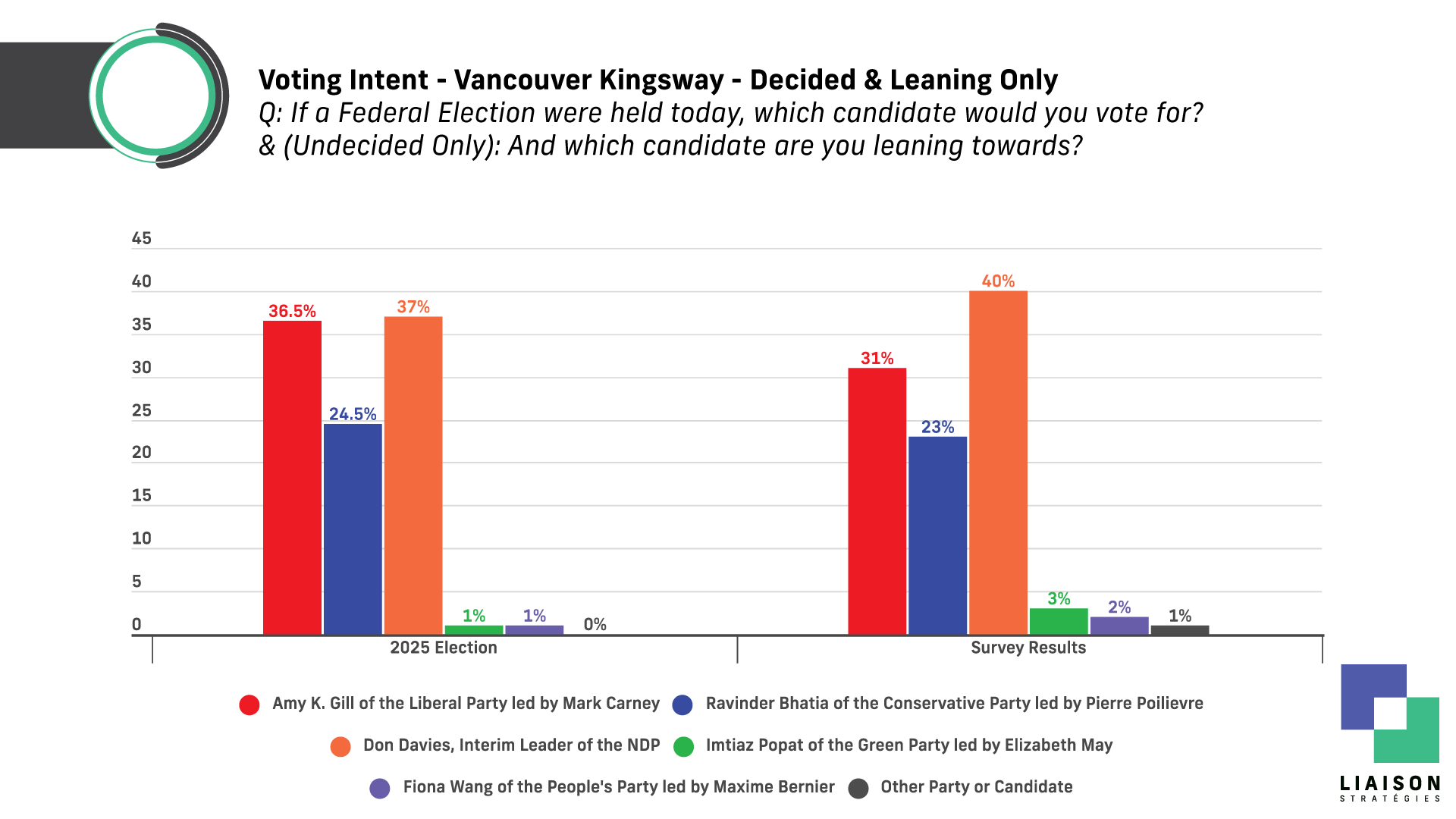 Conducted from November 24 to 30, 2025, using Interactive Voice Response (IVR), the survey polled 576 voters in Vancouver Kingsway. The margin of error is ±4.01 percentage points, 19 times out of 20.