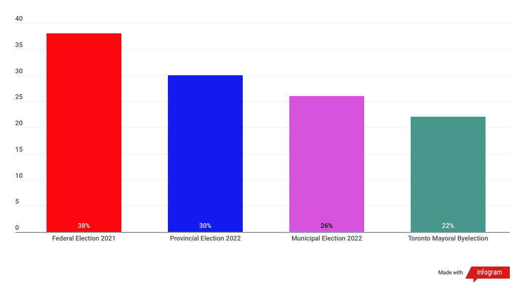 So we can see that 38% of the vote was cast before Election Day ever took place federally - and only 22% of the vote was cast in Toronto before Election Day came around.