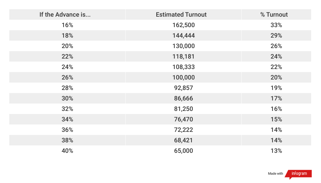 If the advance is 24%, total turnout will be just 22%.